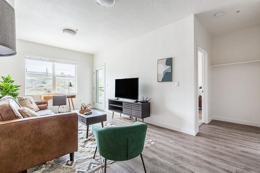 Rockpoint Apartments is an upscale rental community that is fully equipped with modern amenities and elegant designs. Throughout the apartment, you’ll find features like LED lighting, quartz countertops, smart home capabilities, stainless steel appliances, and glass tile backsplash in the kitchen.
