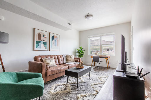 Just south of Salt Lake City, you'll find the peaceful, safe suburb of Bluffdale. In just a short drive from this lovely 2 bedroom, you can reach green spaces like Parry Farms Park, Independence Park Splash Pad, and numerous hiking trails as well as convenient shopping locales like Outlets at Traverse Mountain and Harmons Grocery. Downtown Salt Lake City is about 20 minutes away, and attractions like Loveland Living Planet Aquarium, Museum of Natural Curiosity, and Butterfly Biosphere are just a 10-minute drive. Enjoy the beautiful mountains to the east and west, and gorgeous Lake Utah to the south; here, you're never far from breathtaking scenery. You'll love this home's ideal location and this apartment community's excellent facilities, including the expansive pool and sundeck and a dog park for your furry friends.